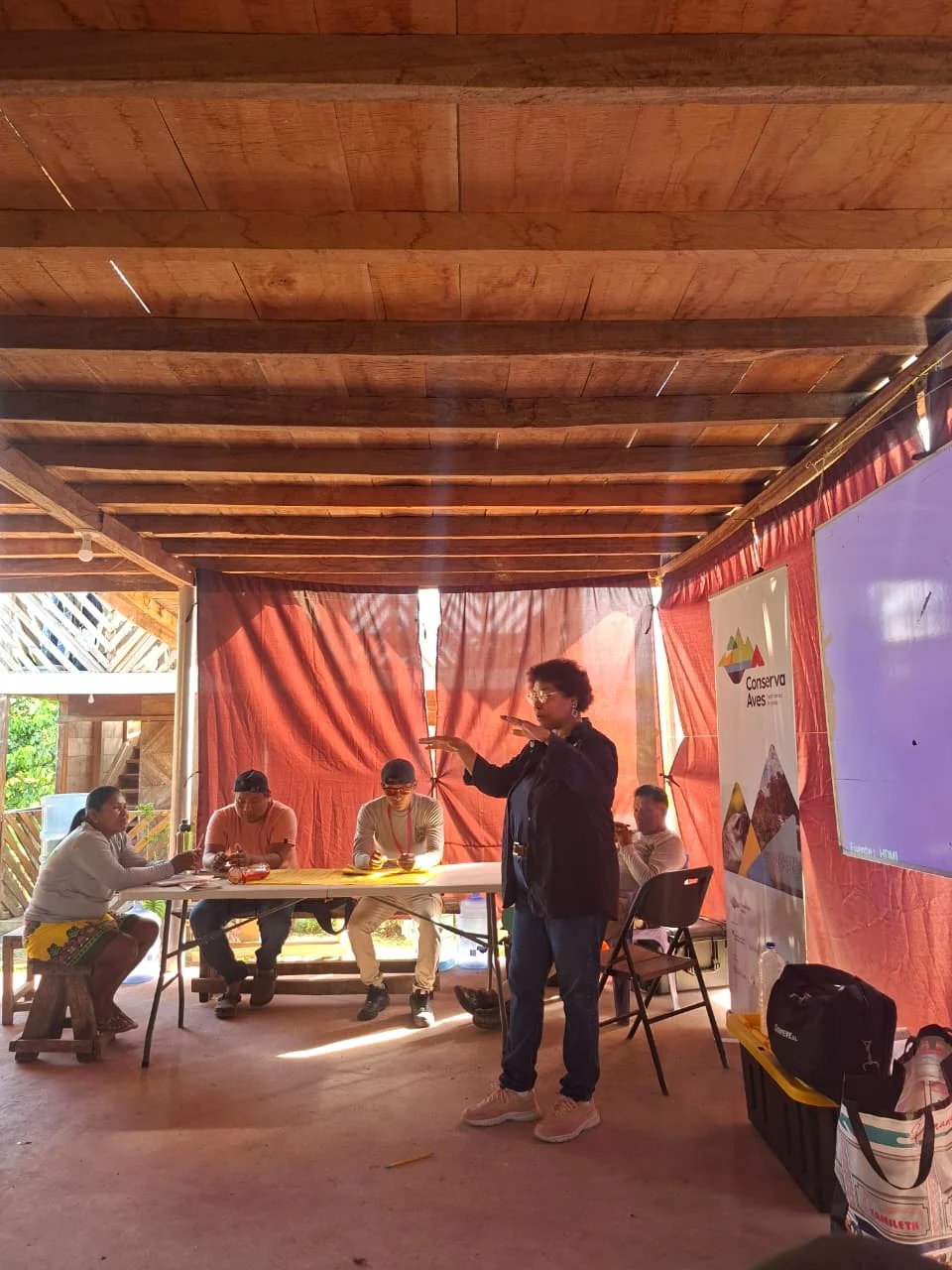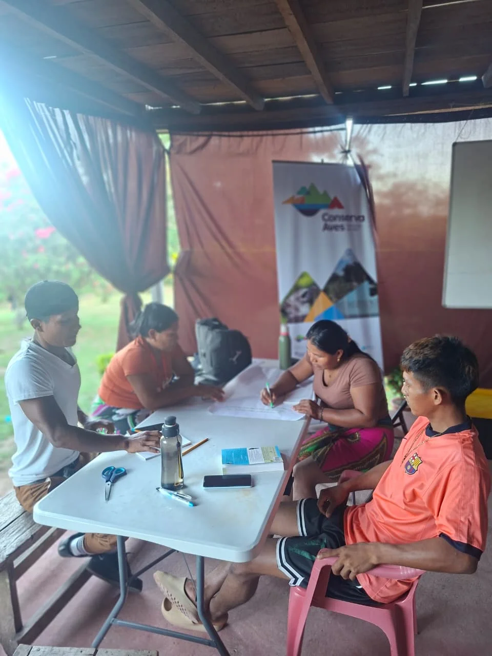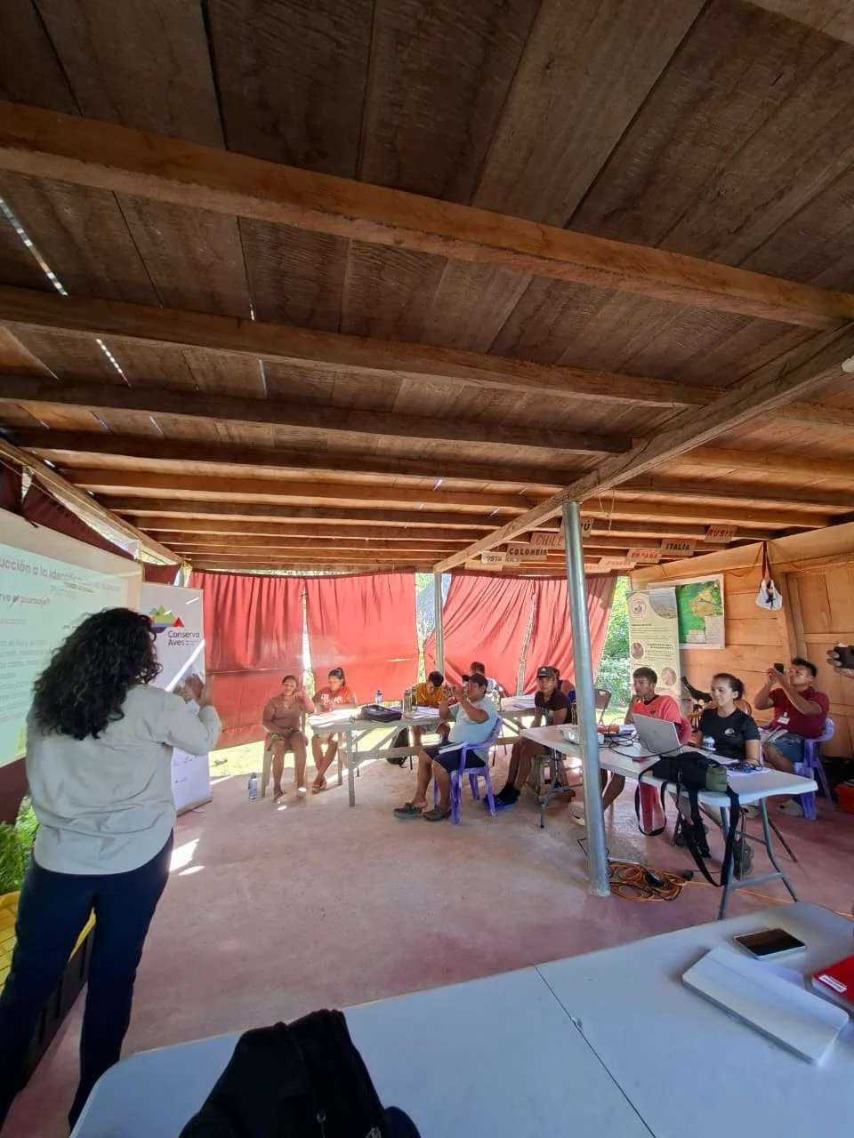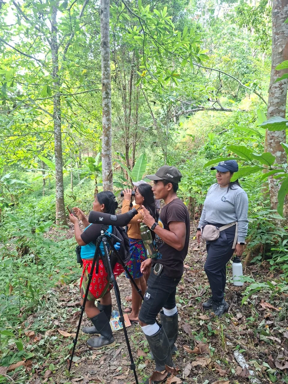 El proceso de capacitación incluyó sesiones teóricas y prácticas enfocadas en el monitoreo de aves, abordando temas como la identificación de especies, el uso de herramientas básicas y el registro de información para el seguimiento de la biodiversidad local. Estas herramientas permiten a las comunidades desempeñar un rol activo en la generación de datos clave para la conservación en sus territorios.